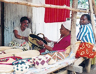 In Gertrude Kabatalemwa's words: "Nationals' Effort to Eradicate Poverty in Uganda (NEEPU) is a Non-Government Organisation, registered with the Ugandan government. This organization has been in operation since1997. The goal of NEEPU is to help eradicate poverty in Uganda. We started by training the grass roots in hand crafts especially in basket weaving in rural areas. NEEPU started with 7 women who saw our vision and now more than 20 women weave baskets as their income generating activity for their household. In these groups we have widows, needy, school drop outs. We have various weaving materials e.g Banana Fiber, Rafia, Sisal, Reeds, Millet & Wild millet stalks, Papyrus and Palm leaves. Also we have started to train young girls in our Nyamabuga Village Project School. With the emphasis on girl-child not only to give her book knowledge, but also craft skills "With Hands On" in order to start them off at a tender age, in order to carry on with these skills which may reward them in case they don't make it for further education. Basket weaving activity has uplifted the standard of women in villages, they are the direct benefactors when Global Crafts makes an order. " |